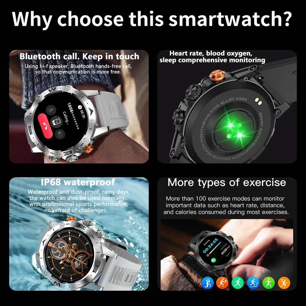 2024 New Bluetooth Calling Smart Watch Men Sports Fitness Tracker Watches IP68 Waterproof 360*360 HD Smartwatch For Android IOS