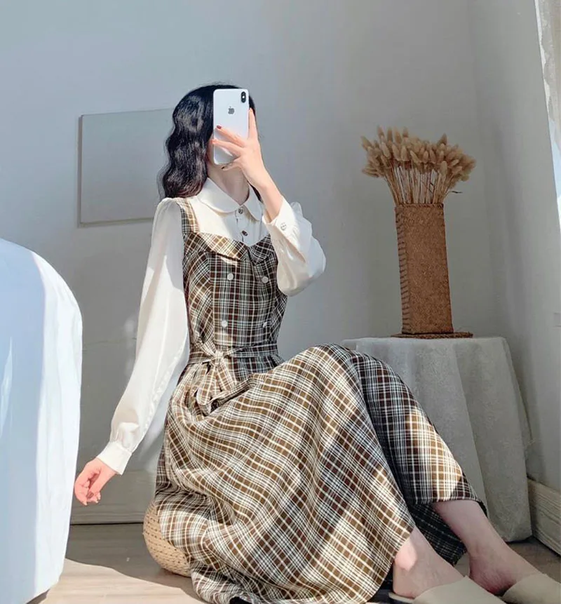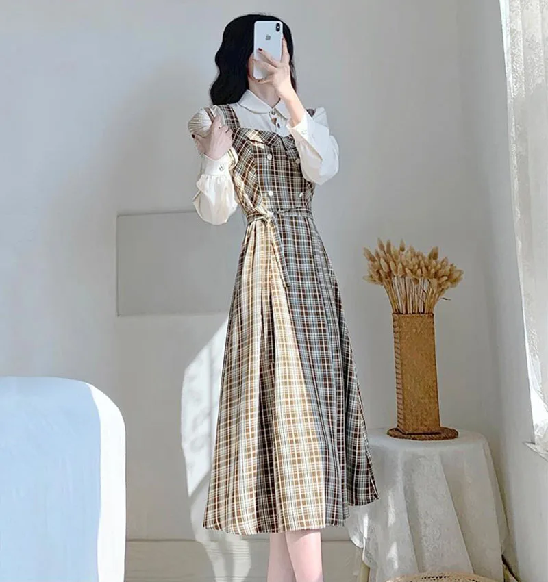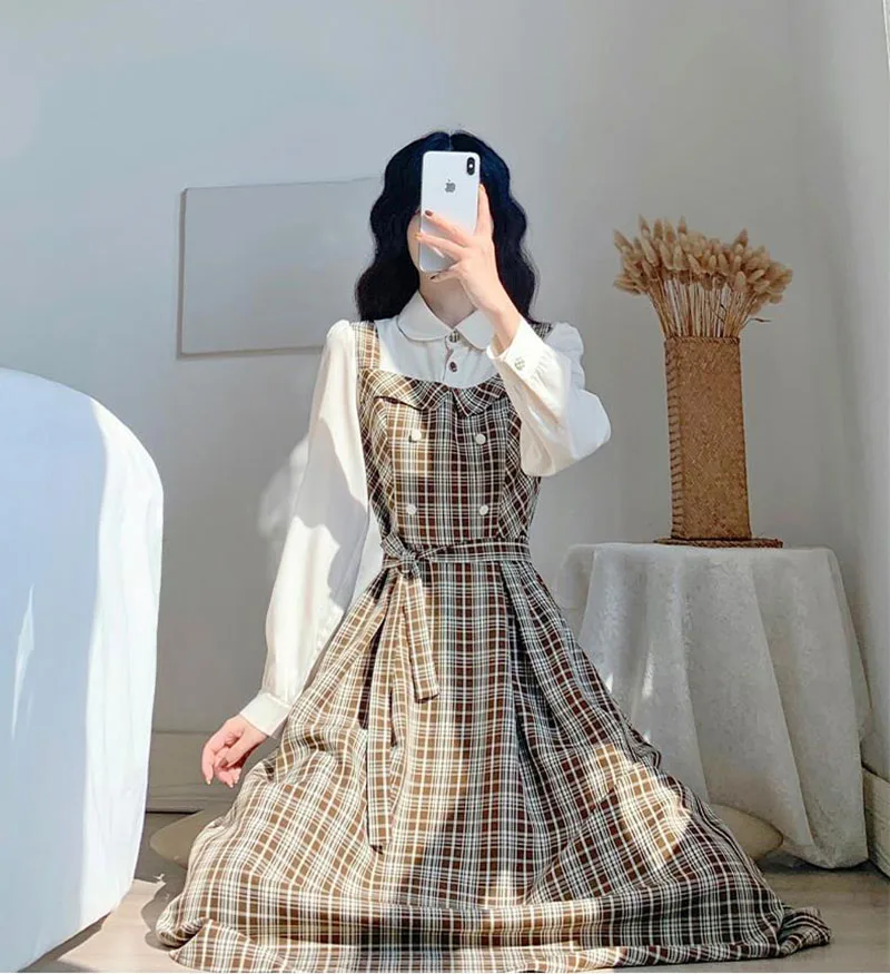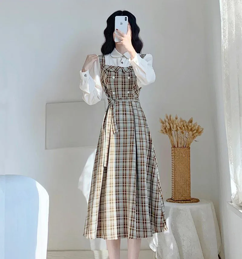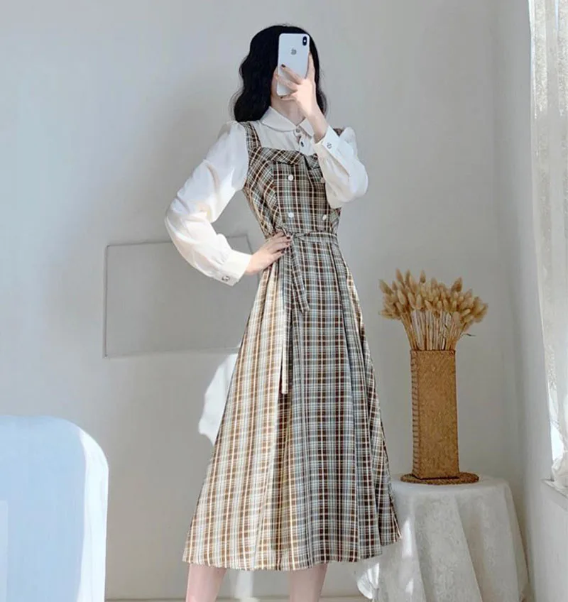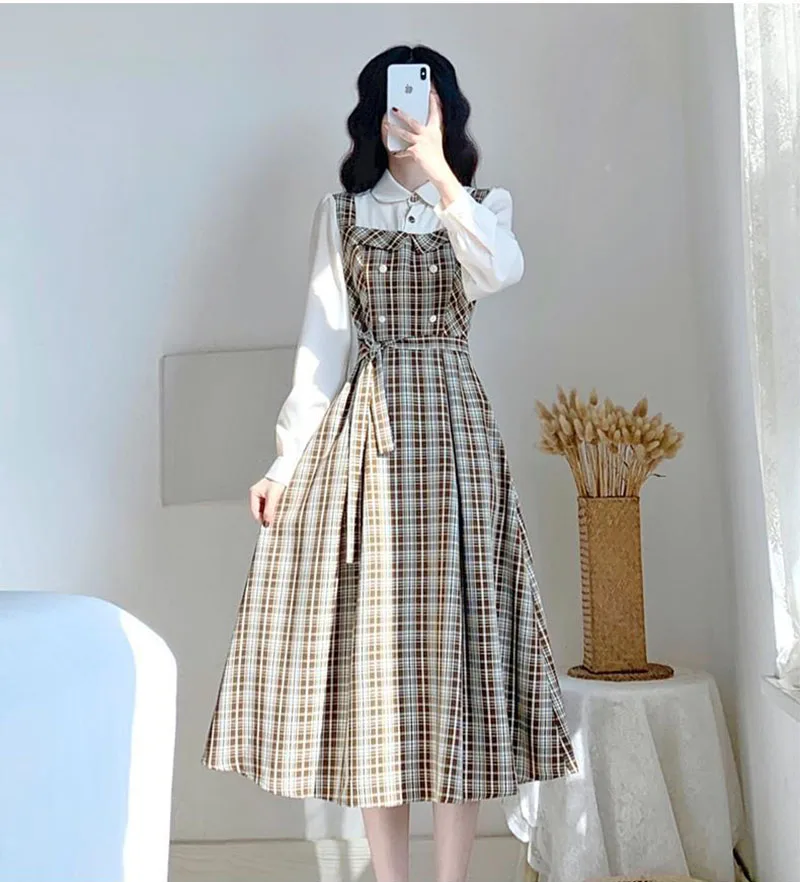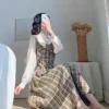 Be the first to review “French Vintage Plaid Dress Women Fake Two Pieces Autumn Preppy Style Vestidos Elegant Patchwork Long Sleeve Dress”
