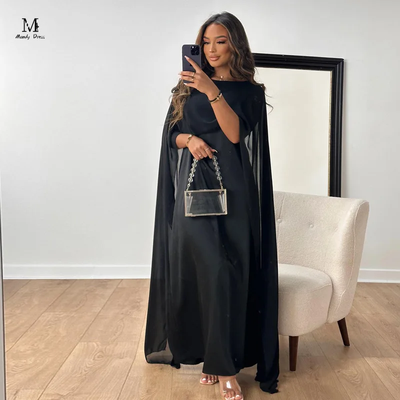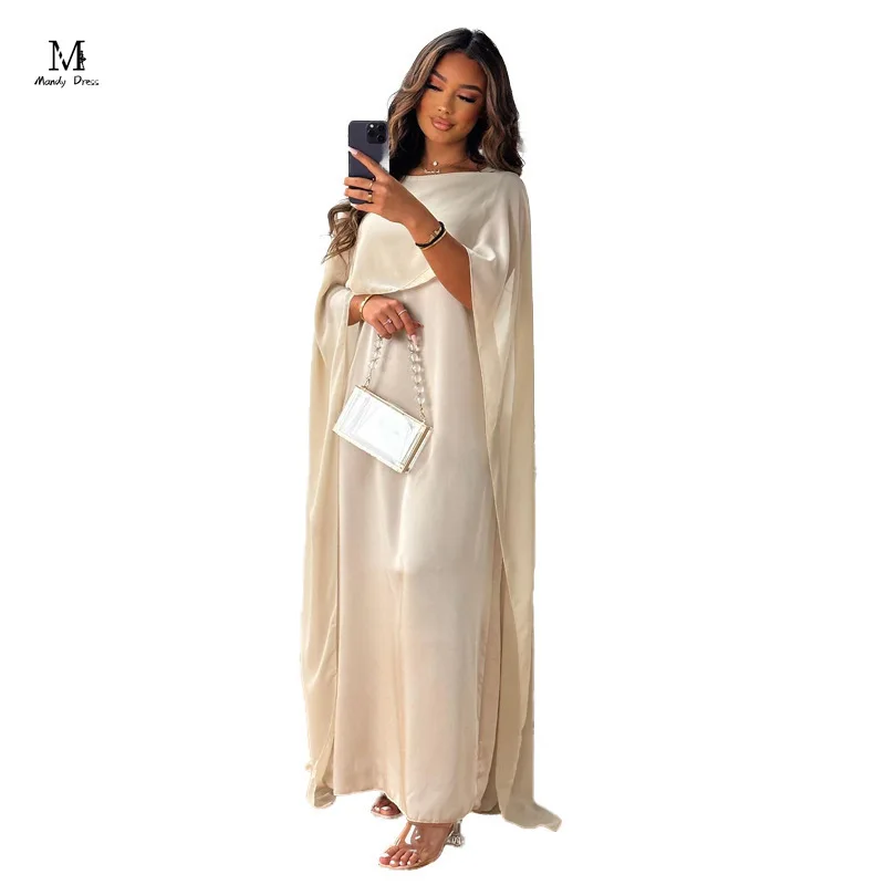 New In Chic Mesh Satin Maxi Dress for Women Elegant Loose Solid Color Clothing Fall Winter Casual Lady Long Robe