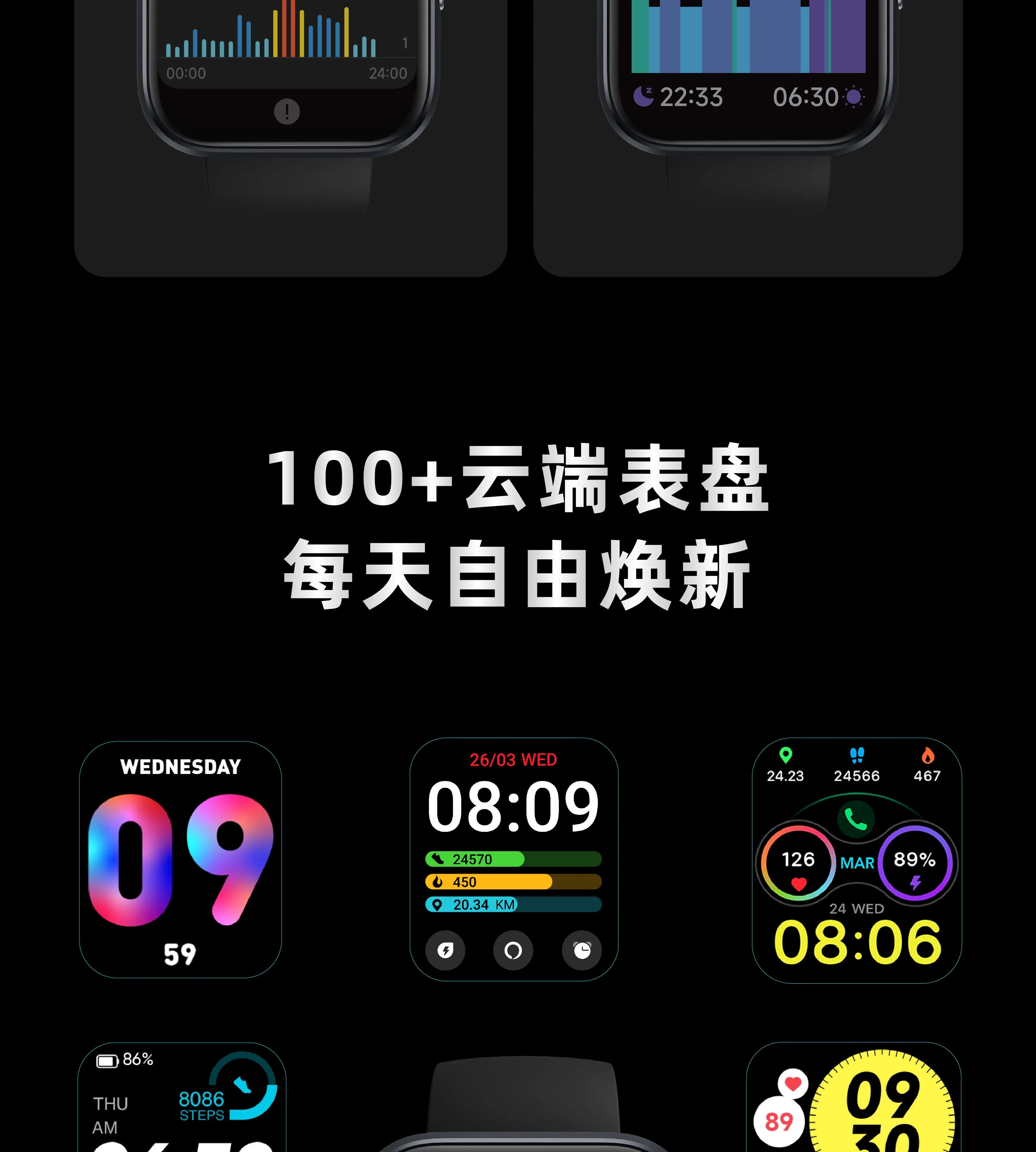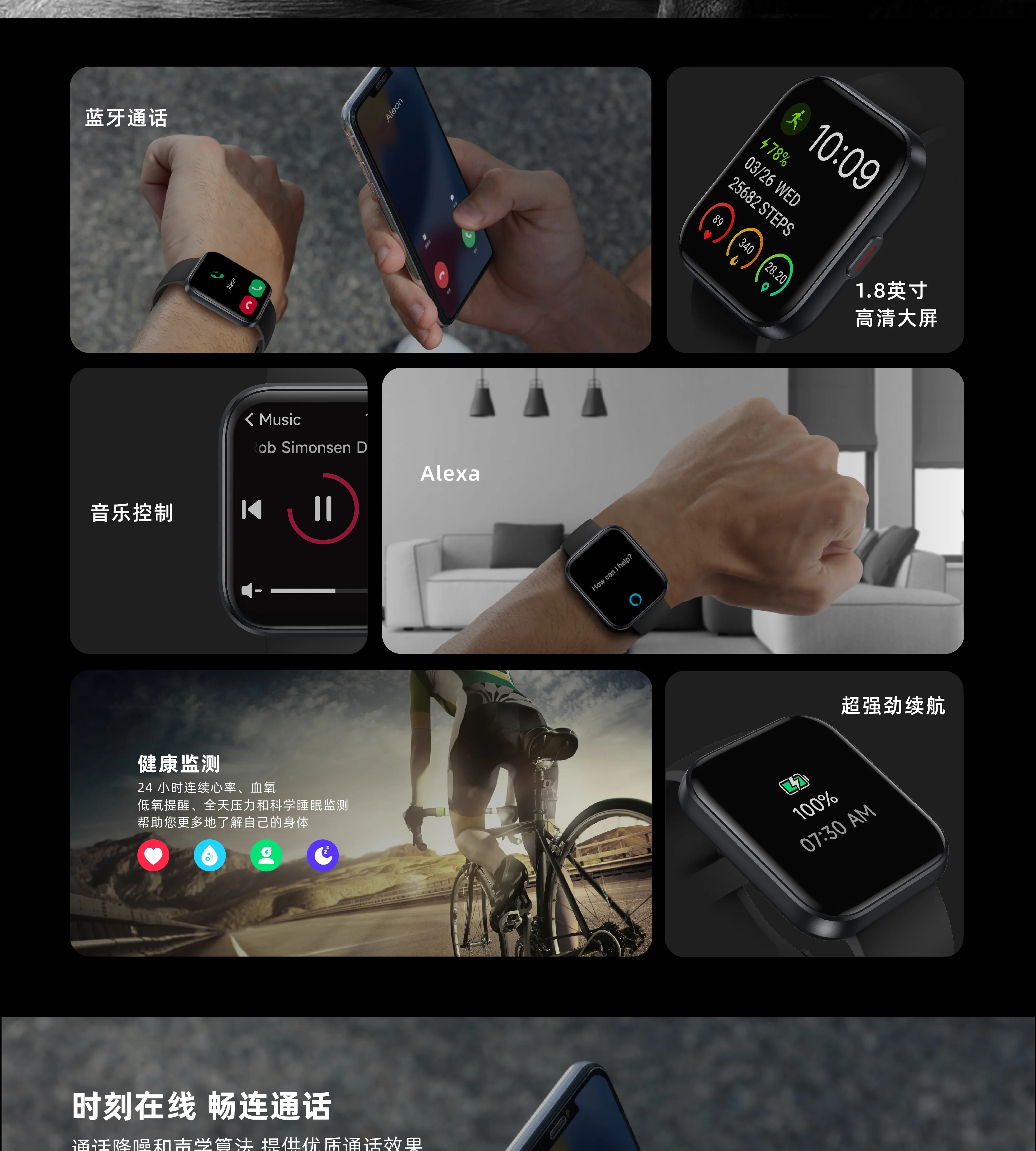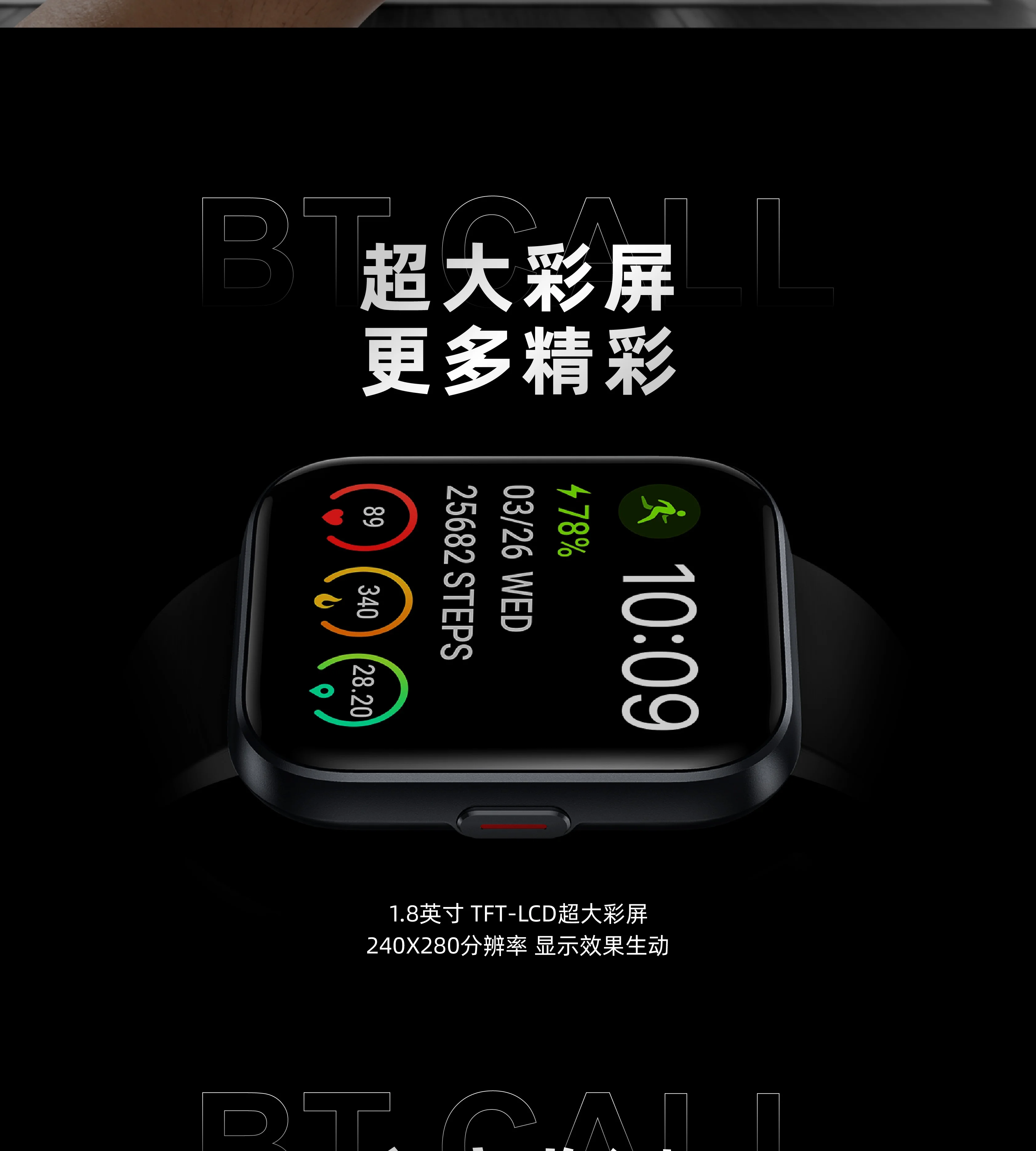【Customization Watch Faces】: The 1.8-inch ultra-clear large screenmakes the application space in the watchlarger, and the interface adjustment andapplication layout are more flexible andeasier to operate.