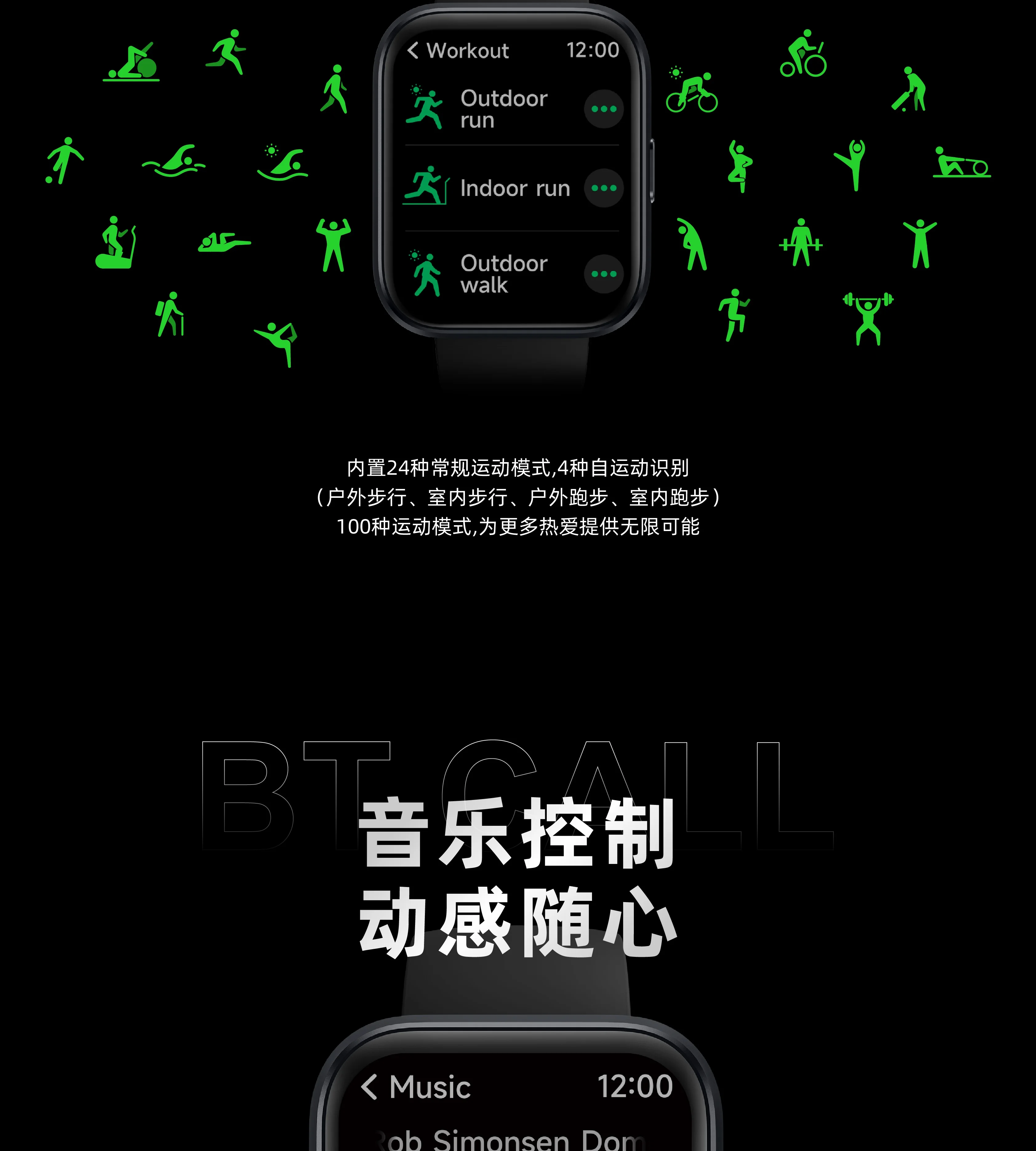Outdoor Running, Indoor Running, Outdoor Walking, Indoor Walking, Outdoor Cycling, Hiking, Cricket, Pool Swimming, Open Swimming, Yoga, Pilates, Dance, Rowing Machine, Elliptical MachineCore training, functional strength training, high-intensity interval training, finishing relaxation, fitness, support 100 sports types
